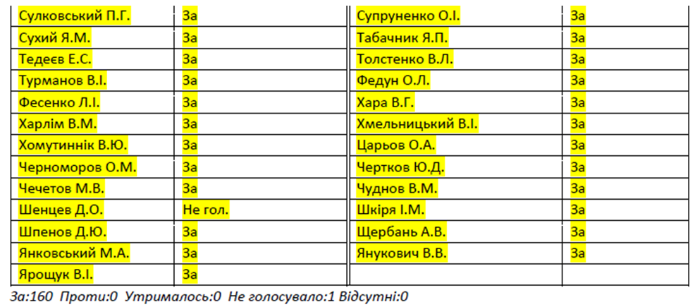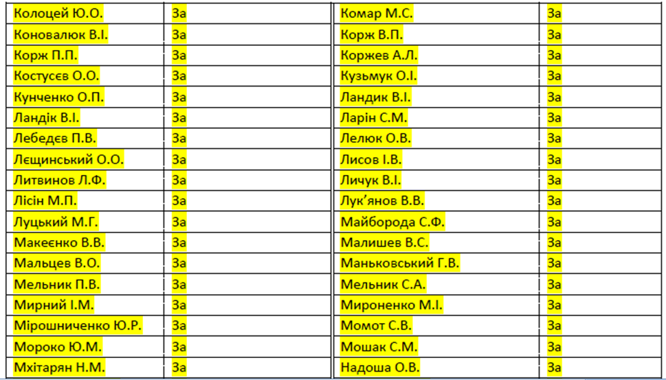Ось текст угоди, а нижче перелік нардепів і хто з них як голосував.