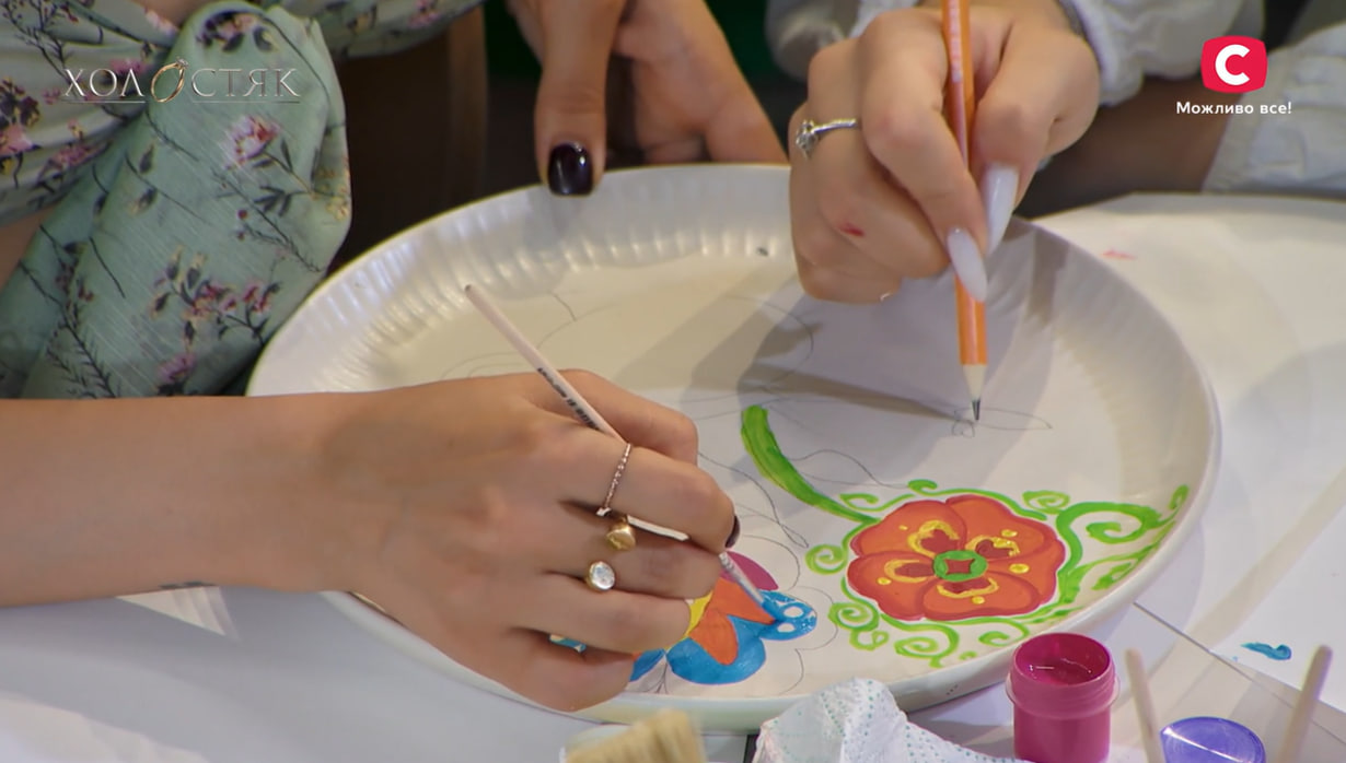 Учасниці приїхали до майстерні та займалися розписом тарілок. Вони поділилися на три групи та створювали свої розписи. Зокрема, вони зображували на тарілках квіти, з яких потім повинно було скластися дерево життя.