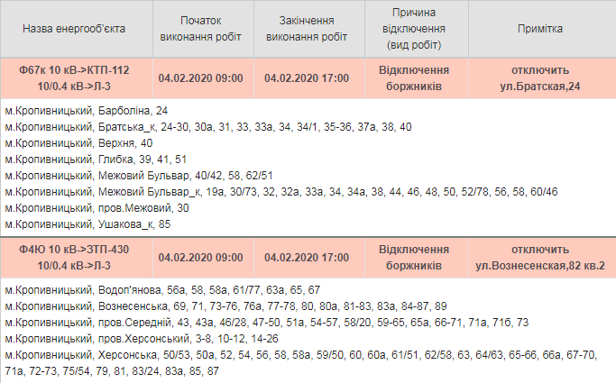Сьогодні, 4 лютого, чимало вулиць у Кропивницькому, може залишитись без світла через аварійний ремонт.