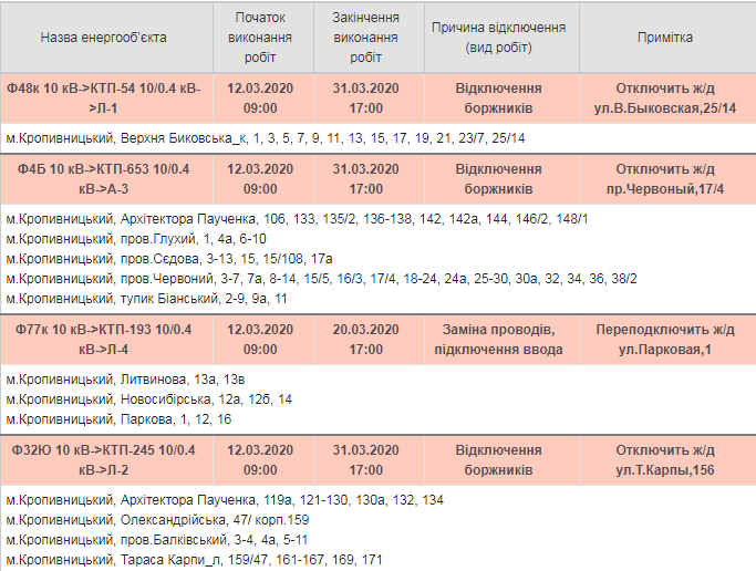 Сьогодні, 12 березня, чимало вулиць у Кропивницькому, можуть залишитися без світла через аварійний ремонт.