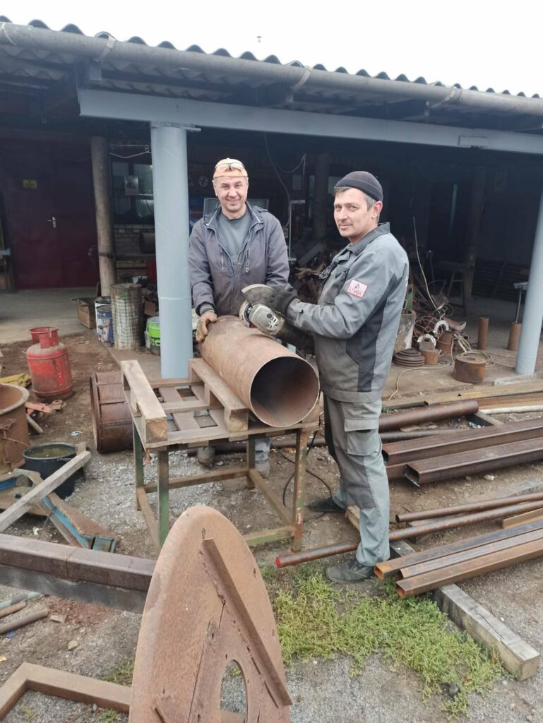 В Гайворонi команда зварювальникiв та слюсарiв роблять буржуйки для опалення блiндажiв.