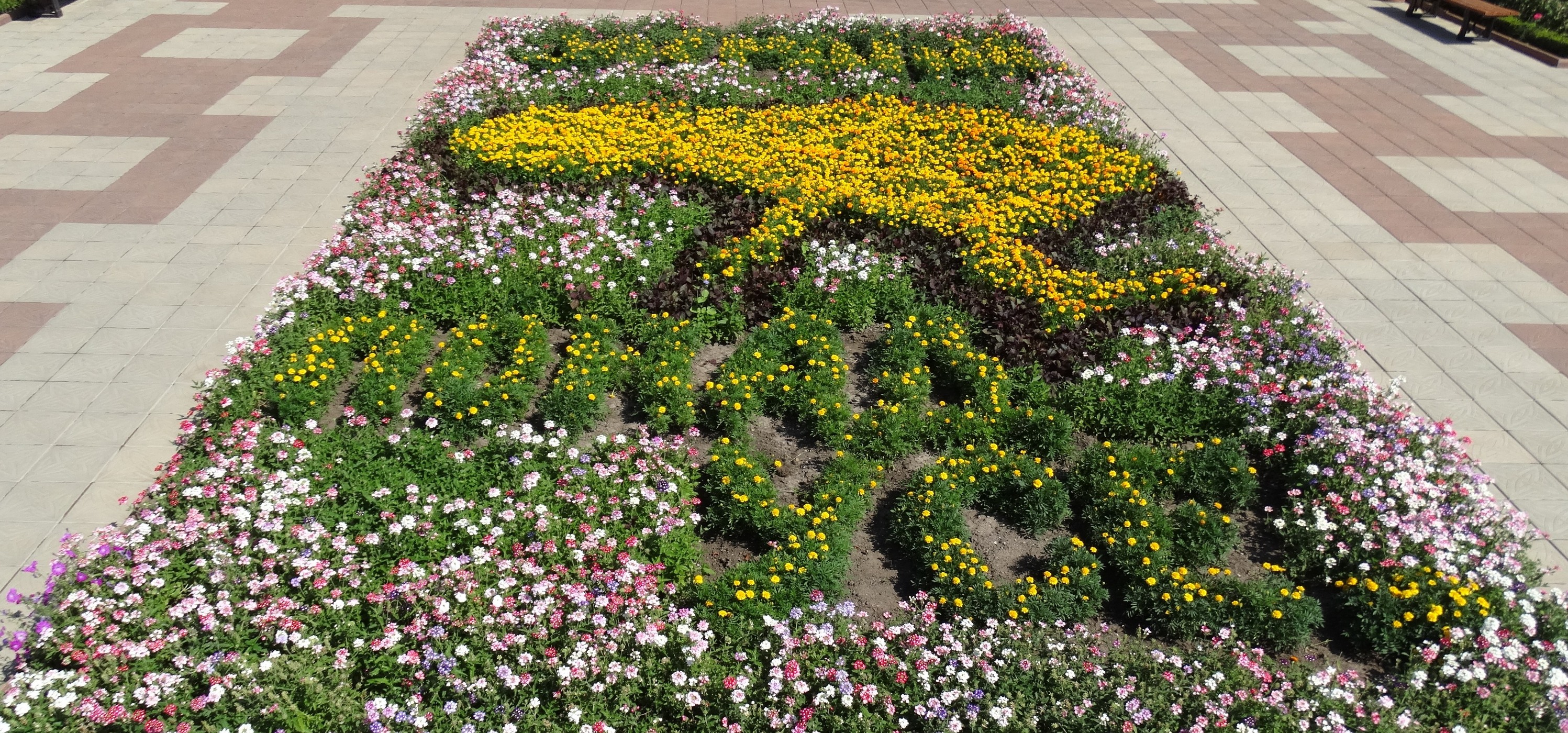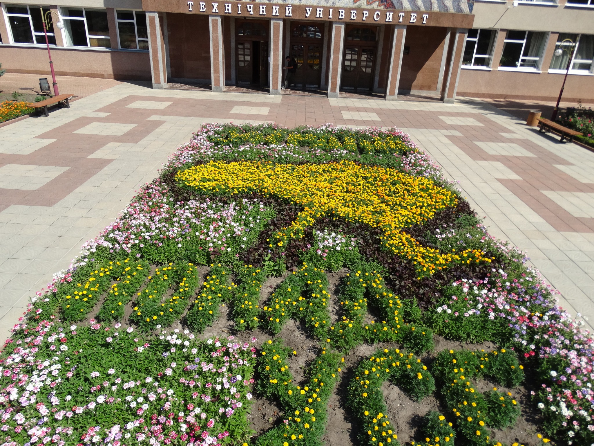 Яскраві квітники створені садівницями адміністративно-господарської частини університету, вражають різнобарв’ям квітів та патріотичними мотивами.