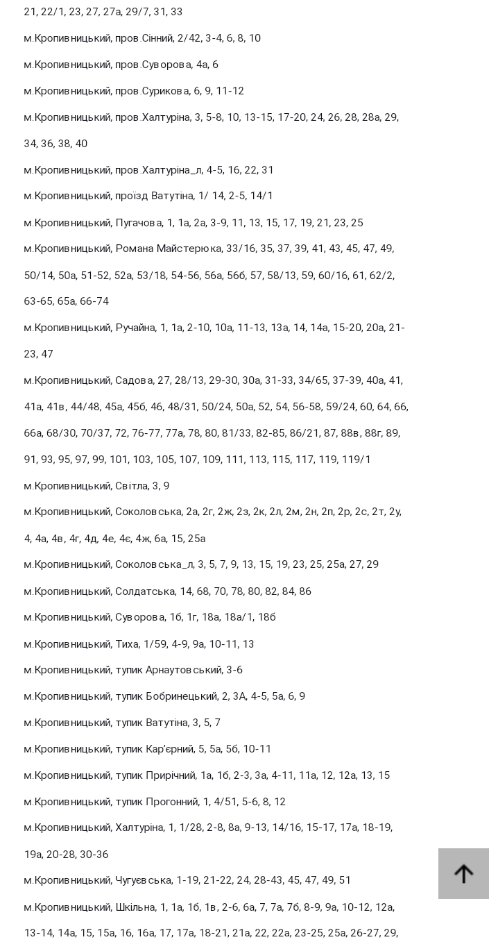 Відключення заплановані з 9 години ранку до 17 години вечора за наступними адресами: