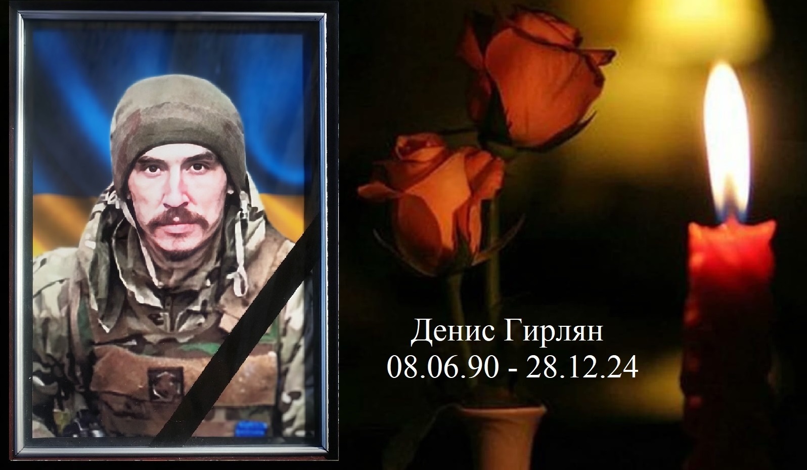 Солдат 34-річний Денис Гирлян загинув 28 грудня 2024 року, виконуючи бойове завдання біля населеного пункту Зелений Гай Ізюмського району Харківської області.