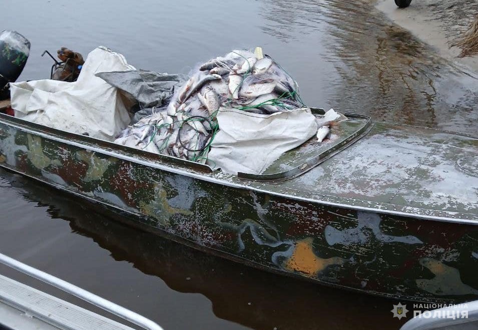 Правоохоронці вилучили з місця події знаряддя лову – 10 сіток, а також човен та понад 1570 штук виловленої риби різних видів.