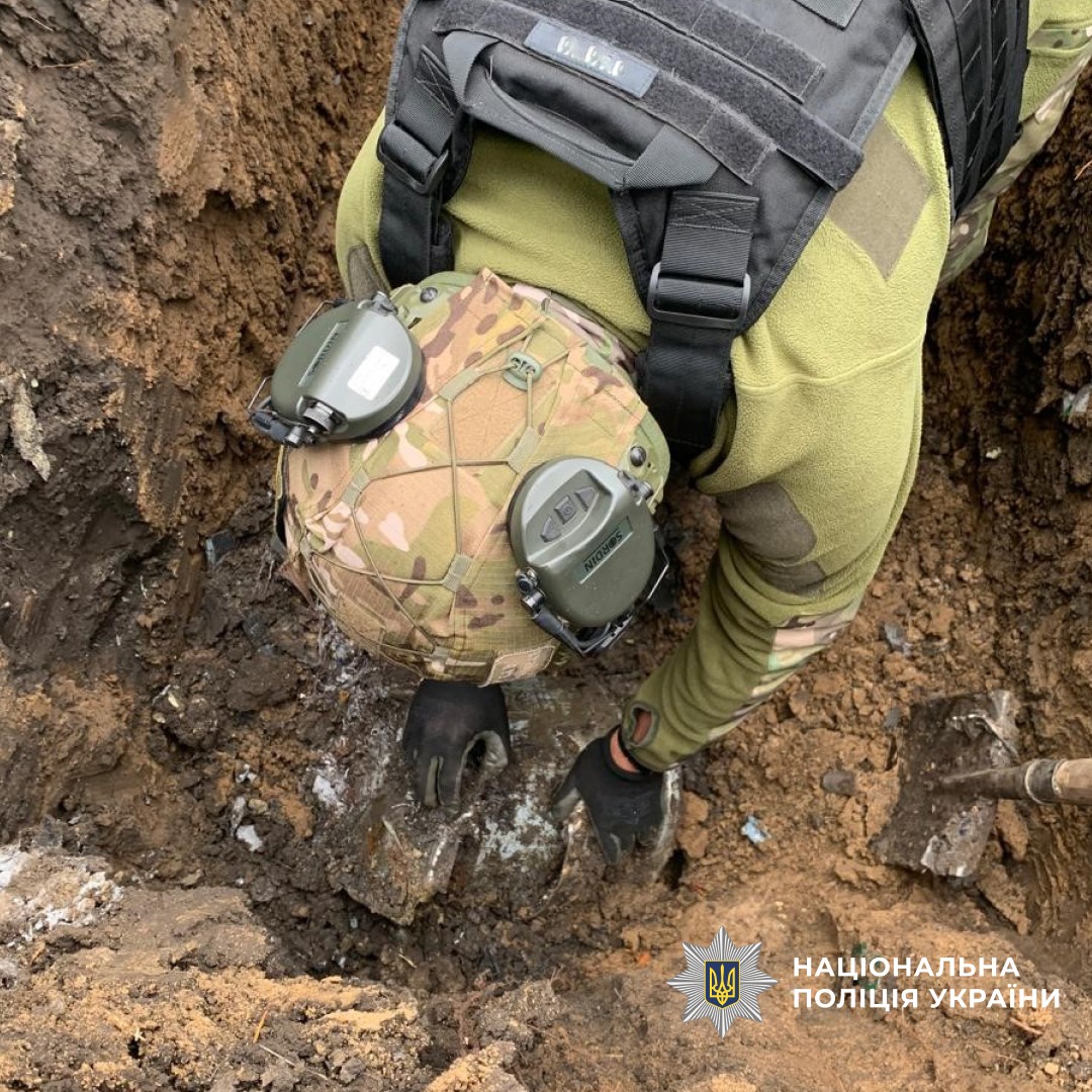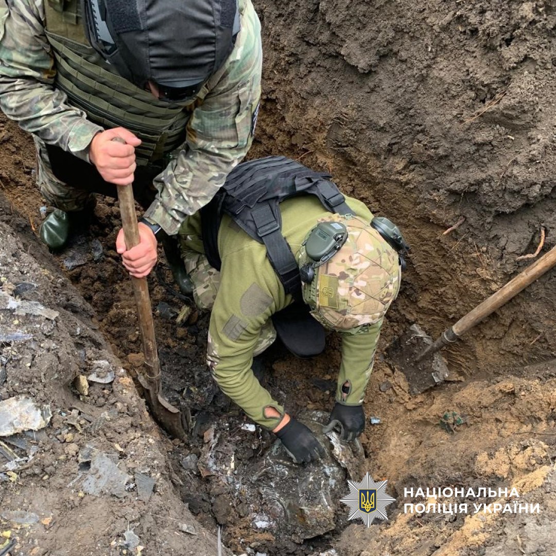На мiсце подiї прибули фахiвцi вiдомчої вибухотехнiчної служби та обстежили бойову частину БпЛА вагою понад 50 кг, яка заглибилась у землю та не здетонувала.