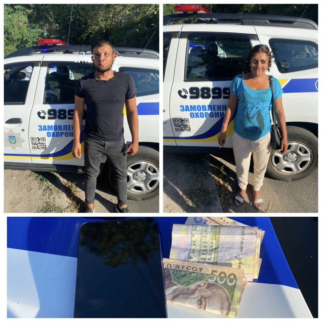 Нарядом реагування негайно вжито заходiв по вiдпрацюваннi прилеглої територiї по «гарячим слiдам». Вже через декiлька хвилин полiцейськими було затримано чоловiка та жiнку, при оглядi у яких було виявлено кошти та мобiльний телефон потерпiлого.