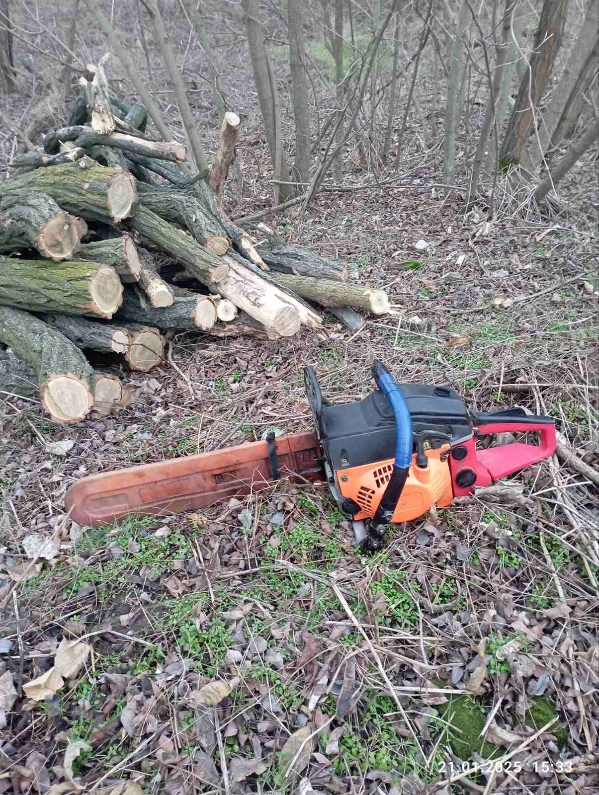 На місці вирубки зловили громадянина, який вантажив у причеп трактора ДМТЗ – 255–XL дров’яні колоди з місця вирубки. Також на місці вирубки знаходилась деревина зі спиляних акацій.