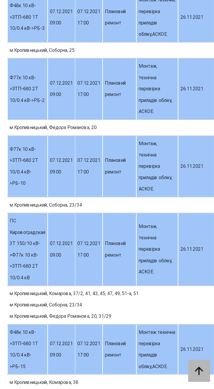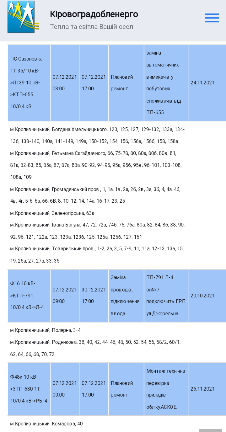 Сьогодні, 7 грудня, чимало вулиць Кропивницького можуть залишитися без світла через плановий ремонт.