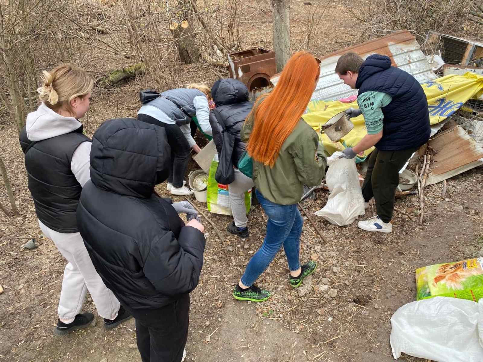 Студенти закладів вищої та передвищої освіти допомагали волонтерам притулку «Щасливий пес» прибирати територію, доглядати за тваринами, сортувати матеріали та створювати комфортні умови для життя хвостатих.