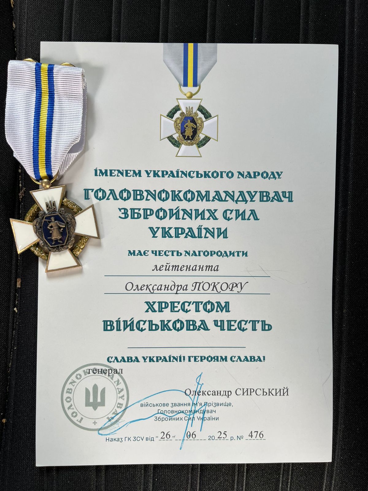 Депутат Світловодської міської ради від ВО «Батьківщина» Олександр Покора отримав одну з почесних відзнак Головнокомандувача Збройних Сил України — Хрест «Військова честь».