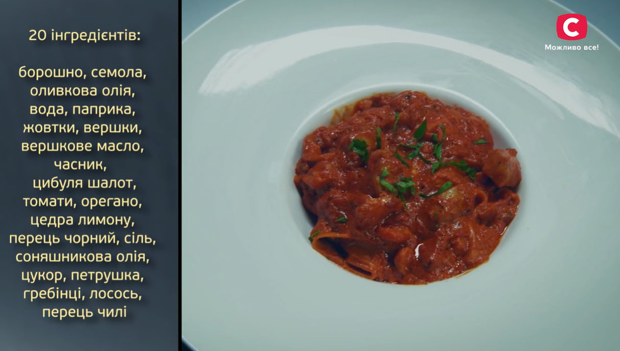 У фінальному конкурсі нового випуску учасникам довелося готувати незвичні морепродукти: від морських їжаків до крабів. Старавою на “вердикт” від Ксенії стала паста з морепродуктами у вершково-томатному соусі.