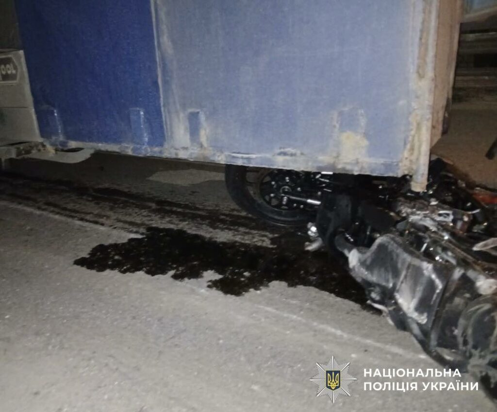 Унаслiдок дорожньо-транспортної пригоди водiй мотоцикла, 2009 року народження, та його пасажир, 2010 року народження, отримали тiлеснi ушкодження. Обох неповнолiтнiх було доправлено до лiкувального закладу.