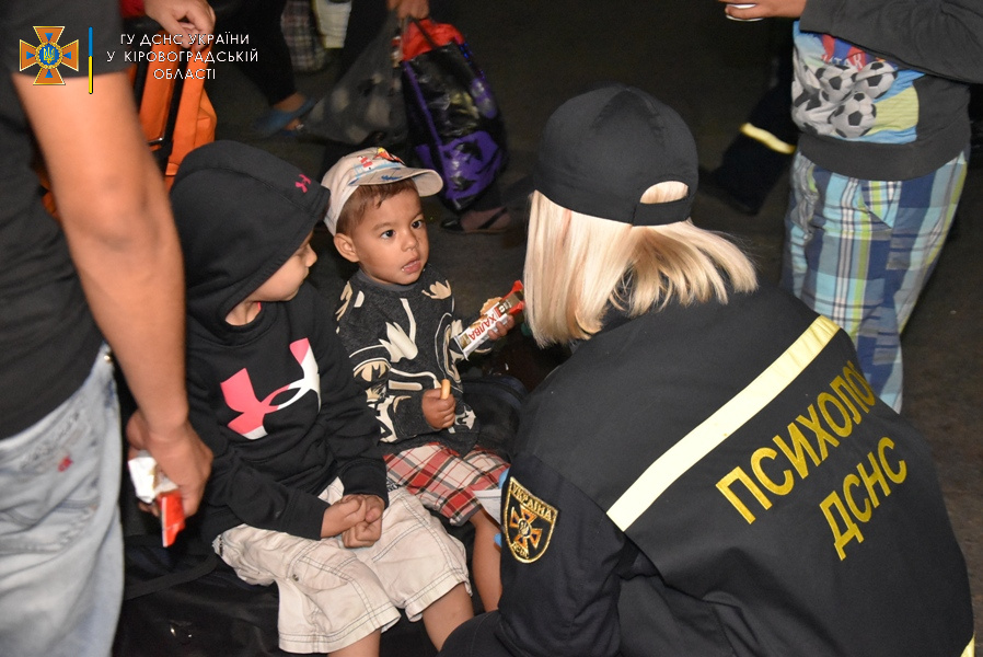 Психологи і рятувальники ГУ ДСНС у Кіровоградській області безпосередньо на пероні вокзалу допомагали людям перенести речі, домашніх тварин.