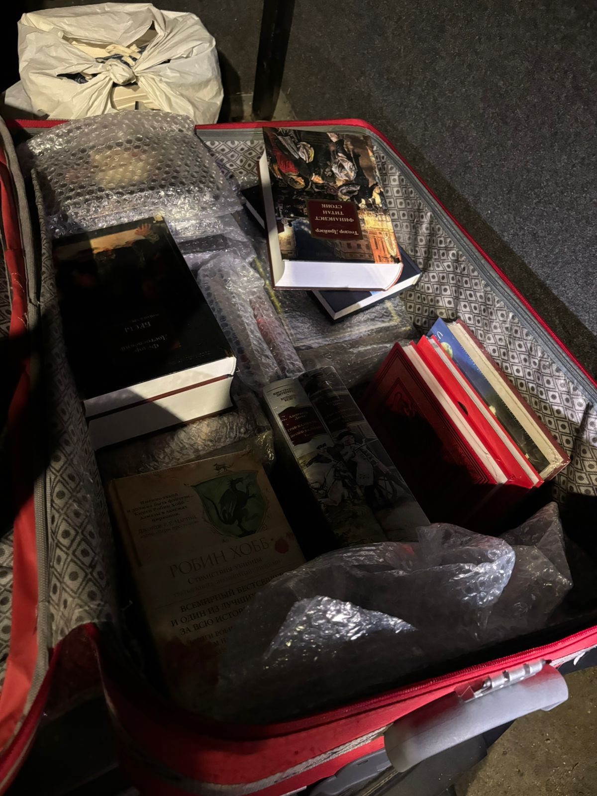 За його словами, книги були частиною передачi з Литви, яку вiн мав доставити до Кропивницького. Всi екземпляри належать до росiйського видавництва та датованi 2023-2025 роками.