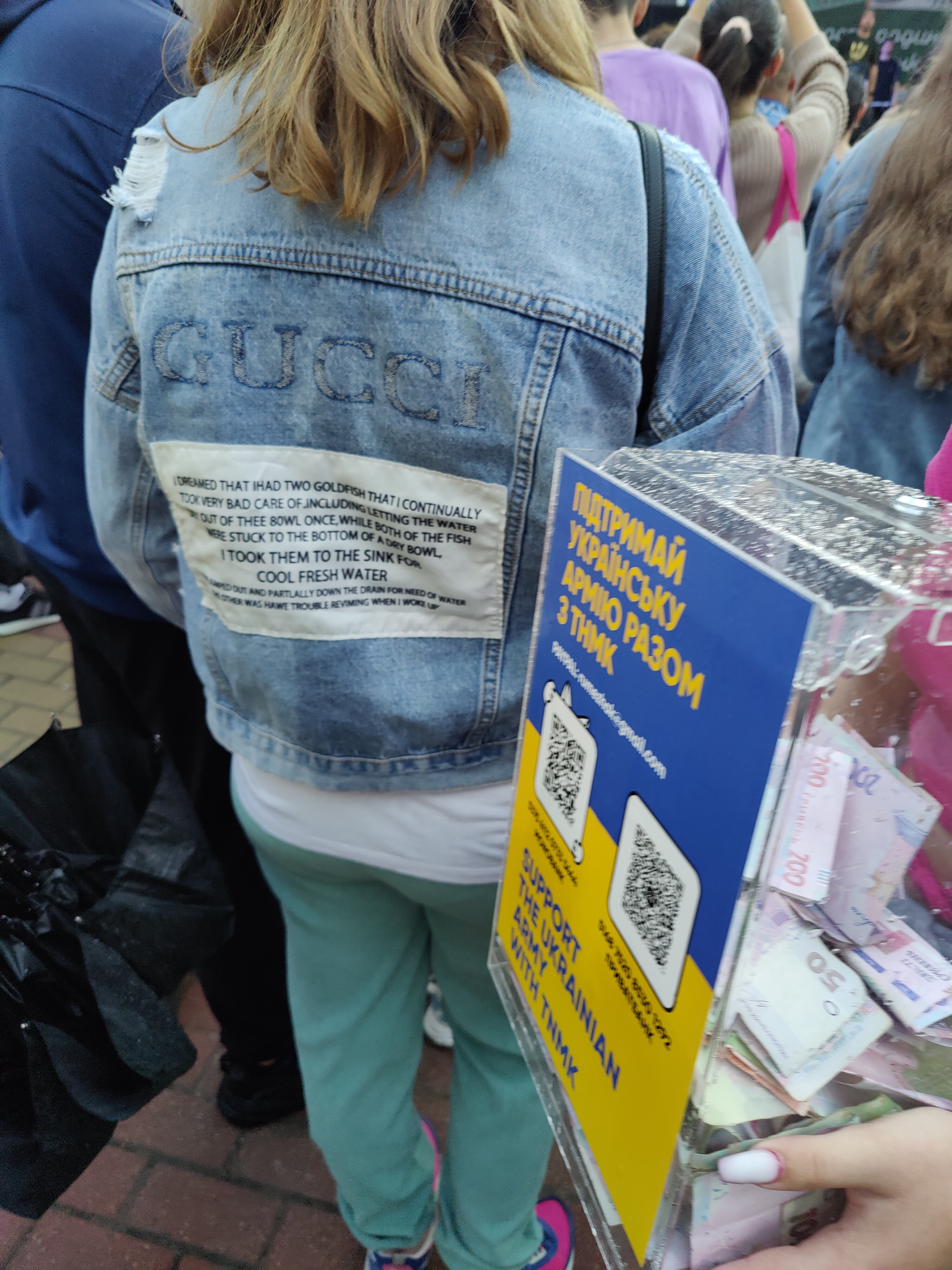Під час виступу також діяв аукціон, у рамках якого за 40 000 грн продали дві гітари, підписані всіма учасниками гурту, а також два прапори з автографами.