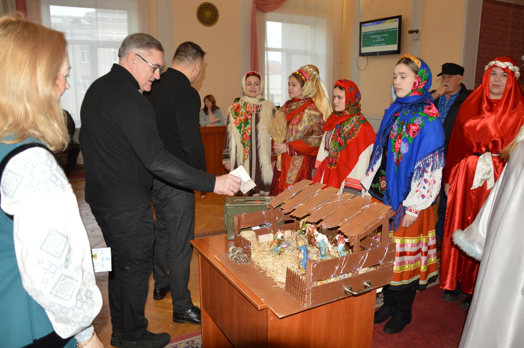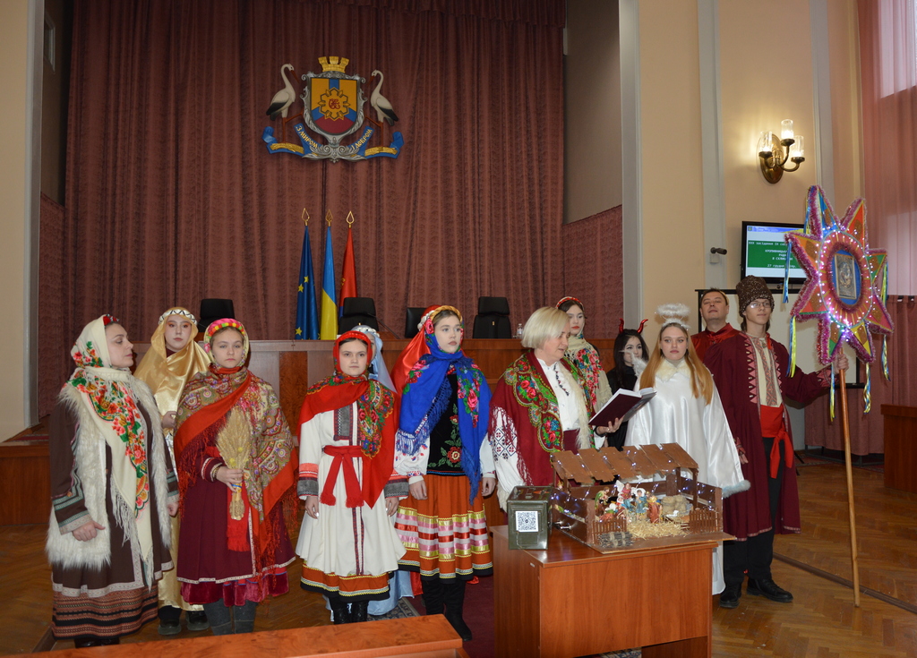 “Наше сесійне засідання відбувається під час різдвяних та новорічних свят. Які ми, на жаль, знову відзначаємо у час великих випробувань і тривог для всієї України. Проте незламний дух нашого народу, його єдність та віра у краще майбутнє дають нам сили рухатися вперед. Важко уявити Різдво без куті, дідуха, дзвінкої коляди, родинного столу і, звісно, без вертепу. З давніх давен українці влаштовували вертепні дійства, попри заборони і важкі часи, його чекали в кожній домівці. Адже вертеп – важливий компонент різдвяного духу, він дарує оптимізм і віру в мирне майбутнє, є втіленням народних традицій та духовного єднання, – зазначив запрошуючи колядників до сесійної зали Олег Колюка. – Сьогодні, коли українці стримують російську навалу та мужньо захищають свою країну, традиції продовжують жити”.