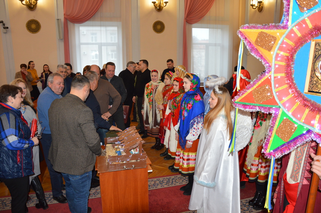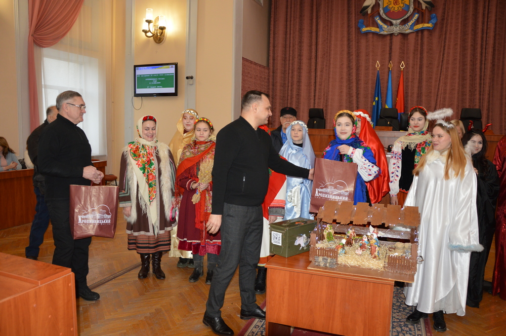 На сесійне засідання привітати депутатів міської ради, виконавчий комітет і всю Кропивницьку громаду з автентичним українським вертепом завітали учні та педагоги Кропивницького професійного ліцею сфери послуг і торгівлі.