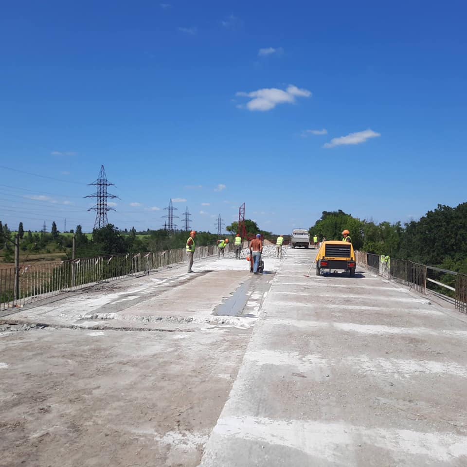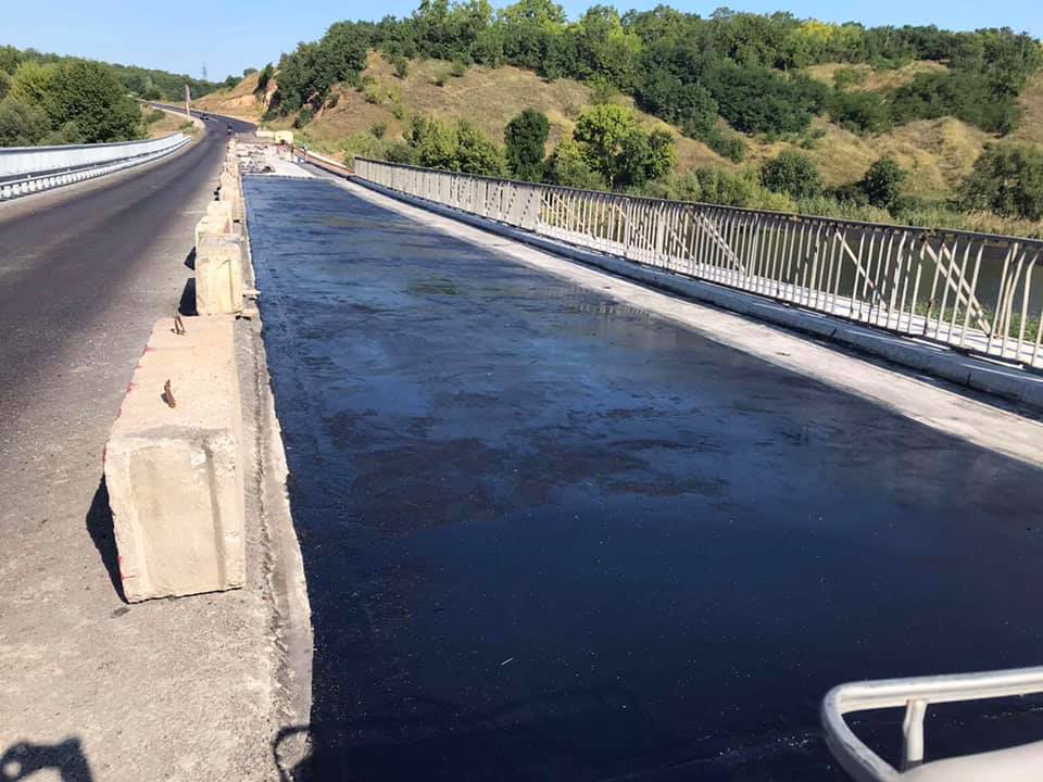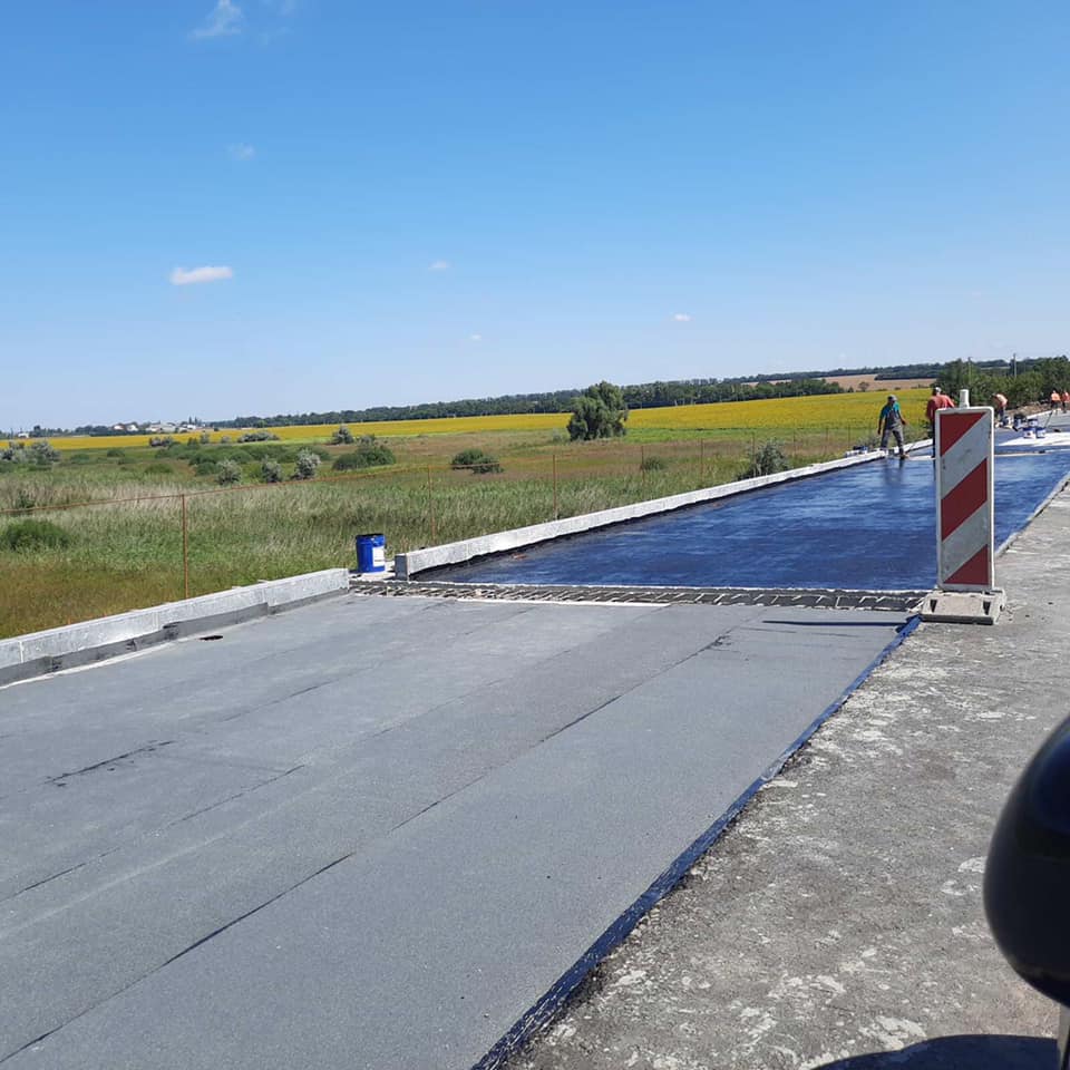 - км 598, р. Синюха – по лівій, вже другій смузі, влаштовують гідроізоляцію та готуються найближчим часом розпочати асфальтування;