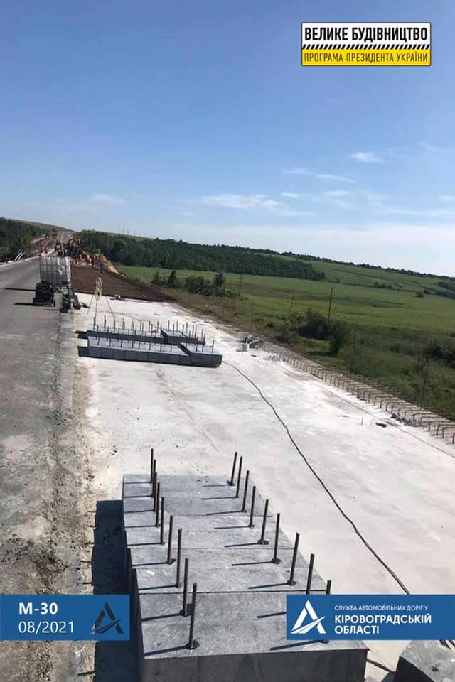 Км 714, міст – на під’їздах вже заасфальтували нижній шар та влаштовують обочини, закінчують заливку монолітної плити, влаштовують гідроізоляцію, бортовий камінь, шафові стінки. Проводяться підготовчі роботи до влаштування тротуарів, встановлюються лежні під перехідні плити, та самі плити.