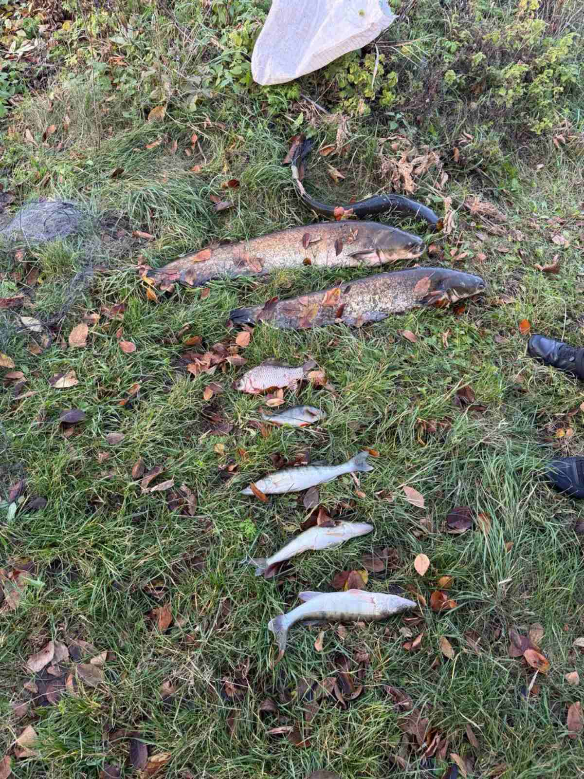 Під час візуального огляду виявлено сітку ліскову, гумовий човен та свіжовиловлені водні біоресурси в кількості 9 шт.