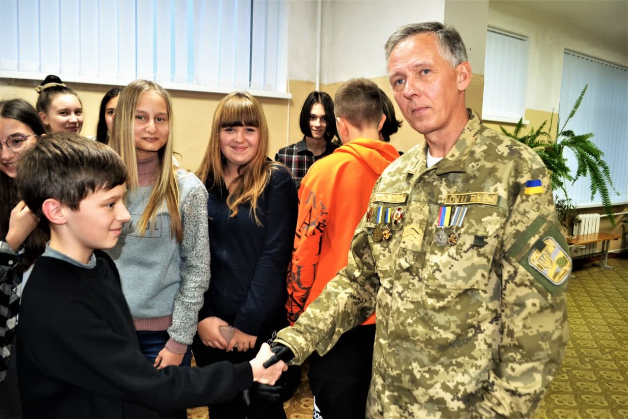 Зустріч із учасником АТО та колишнім учителем школи завершилася фотосесією на згадку про цікаве спілкування.