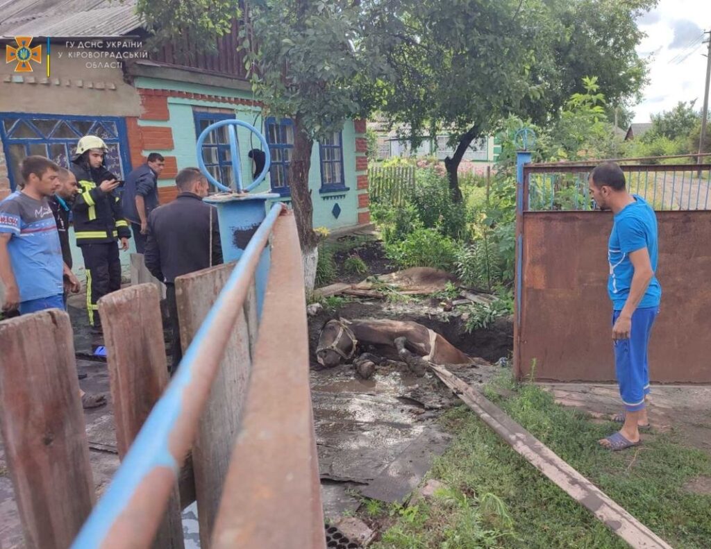 Рятувальники Кiровоградщини витягнули коня з ями.