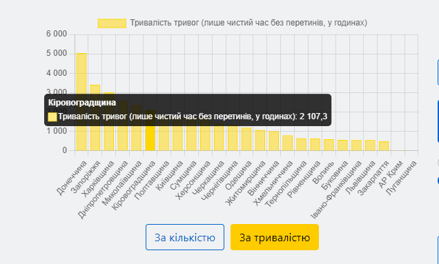 По часу тривалисті тривоги ми шості після Миколаївщини.