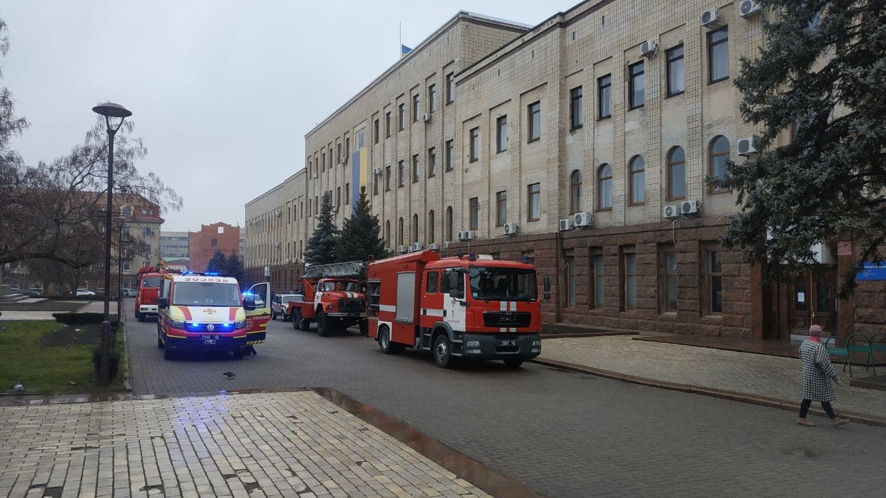 Біля будинку Кіровоградської обласної ради наразі стоїть спецтехніка УДСНС та поліцейські автівки.