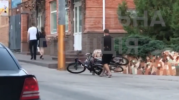 Невiдомий тягнув за собою три велосипеди, якi, вочевидь, йому не належали.