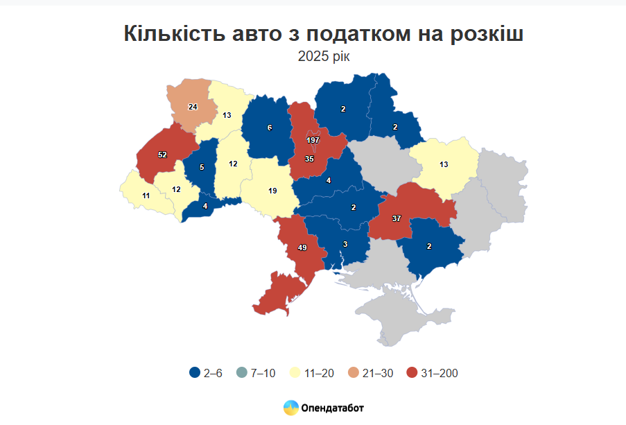 504 авто з “податком на розкiш” завезли в Україну завезли у 2025 роцi — це найнижчий показник за 5 рокiв.