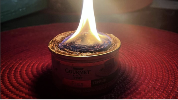 Якщо у вас є, вiзьмiть з собою чисту пусту бляшанку та велику (довгу) парафiнову свiчку.
