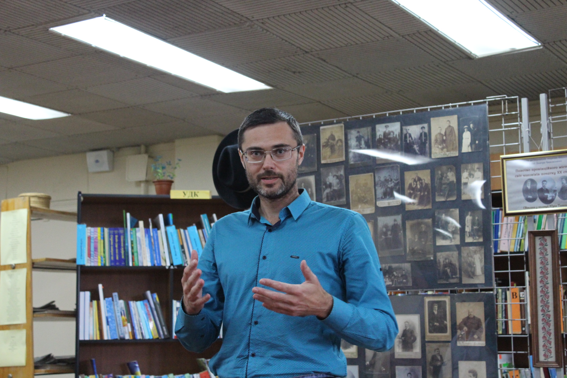 Юрій Тютюшкін розповів присутнім про те, як потрапили до нього ці світлини, про нелегку долю нащадків відомих єлисаветградців, закликав зберігати та обов’язково підписувати світлини з власного сімейного альбому.