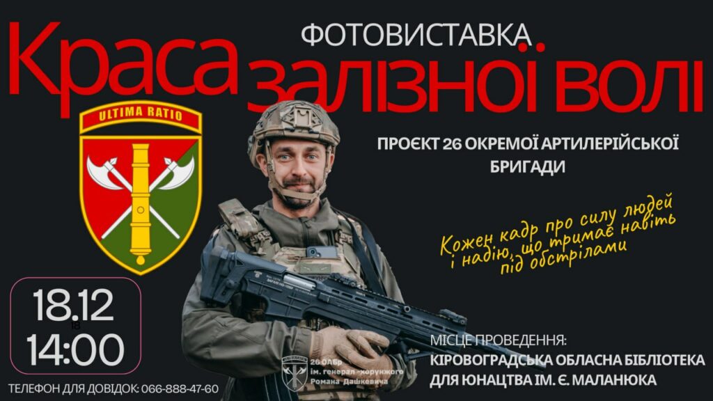 У Кропивницькому вiдбудеться вiдкриття мандрiвної фотовиставки свiтлин про життя вiйськовослужбовцiв на фронтi – «Краса залiзної волi».