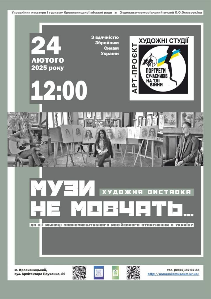 Захід “Портрети сучасників на тлі війни”, присвячений до 3-ї річниці повномасштабного російського вторгнення в Україну відбудеться в рамках арт-проєкту “Художні студії”.