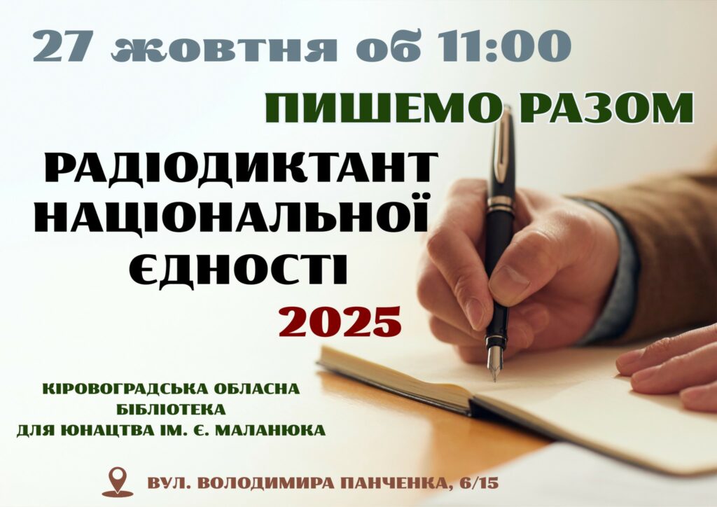 Кропивницкий, разом з усією країною доєднатися до написання Радіодиктанту національної єдності з нагоди Дня української писемності та мови.