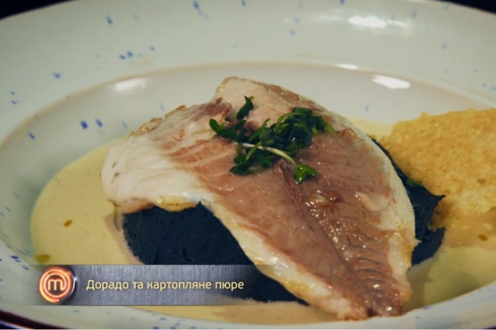Стравою для суддів сексологиня-психологиня обрала філе дорадо на картопляному пюре з трюфельною олією та чорнилами каракатиці під винно-вершковим соусом.