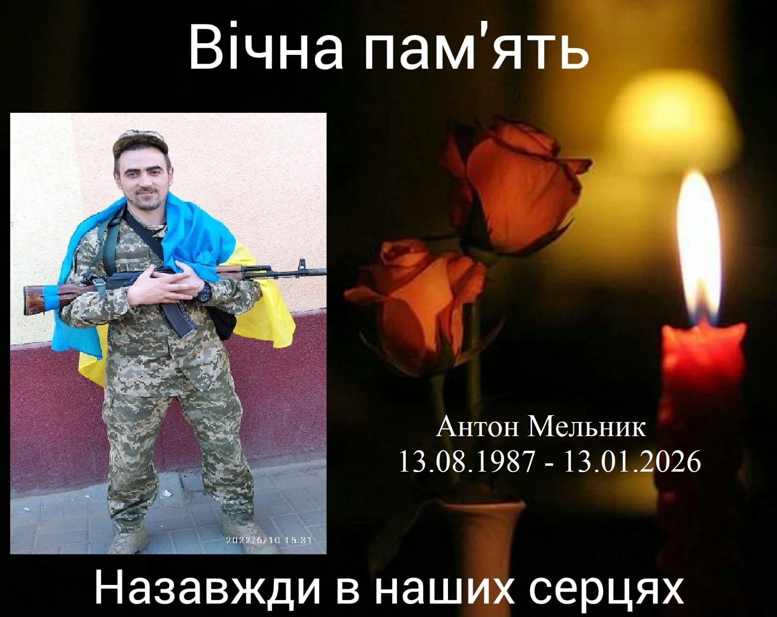 Солдат Антон Мельник, 1987 року народження, водій кулеметного взводу, загинув 13 січня 2026 року під час виконання бойового завдання поблизу населеного пункту Тернувате Запорізького району Запорізької області.