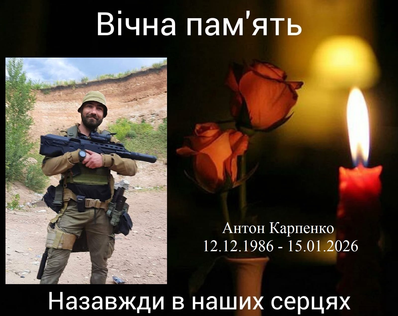 Сержант Антон Карпенко, 1986 року народження, командир відділення взводу протитанкових ракетних комплексів, помер у шпиталі 15 січня 2026 року.