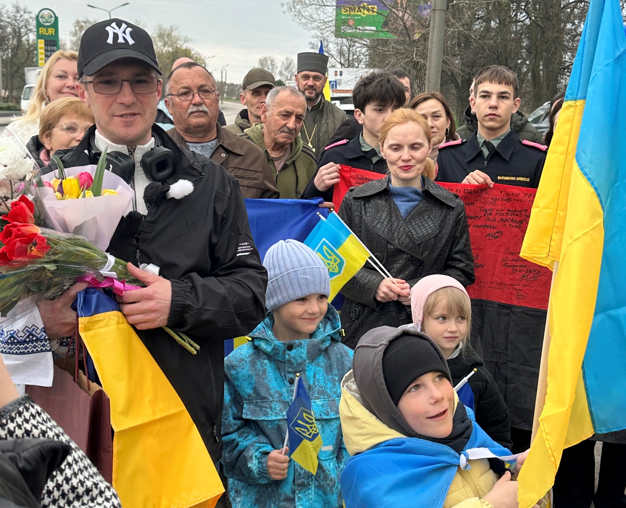 Зі сльозами радості, міцними обіймами, з квітами і прапорами зустріли сьогодні, 16 квітня, звільненого з полону військовослужбовця, 39-річного кропивничанина Євгенія Коденця.