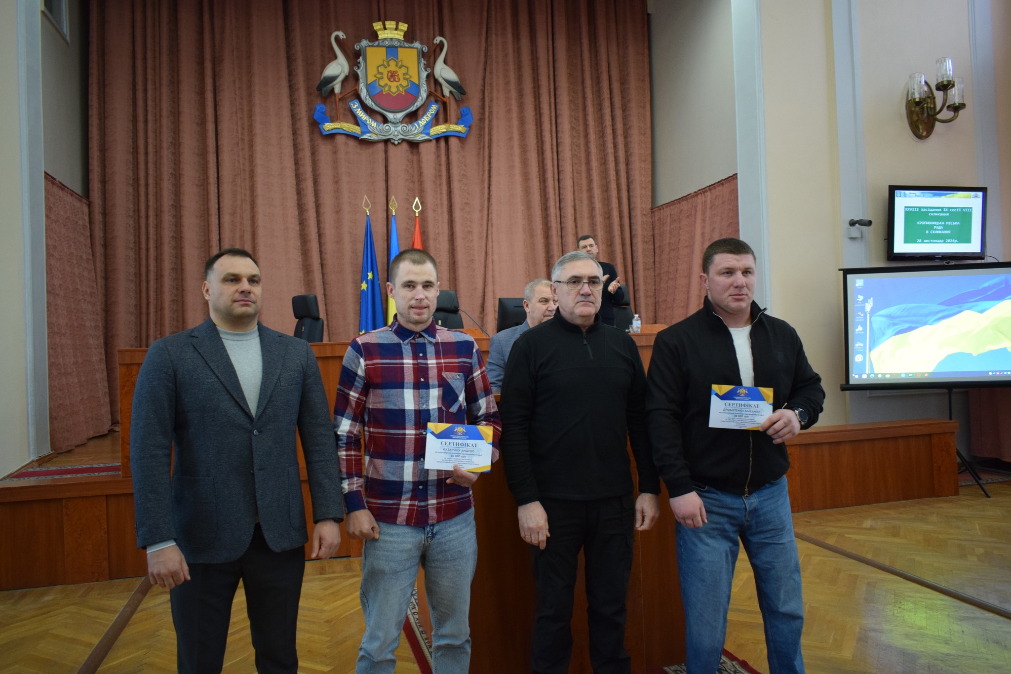 Депутати Кропивницької міської ради стоячи аплодували мужності кропивницьких воїнів – спортсменів. А секретар міської ради Олег Колюка та заступник міського голови Олександр Мосін привітали Михайла Дроботенка і Андрія Казарина та вручили їм сертифікати на отримання грошової винагороди у сумі 30 тисяч гривень кожному.