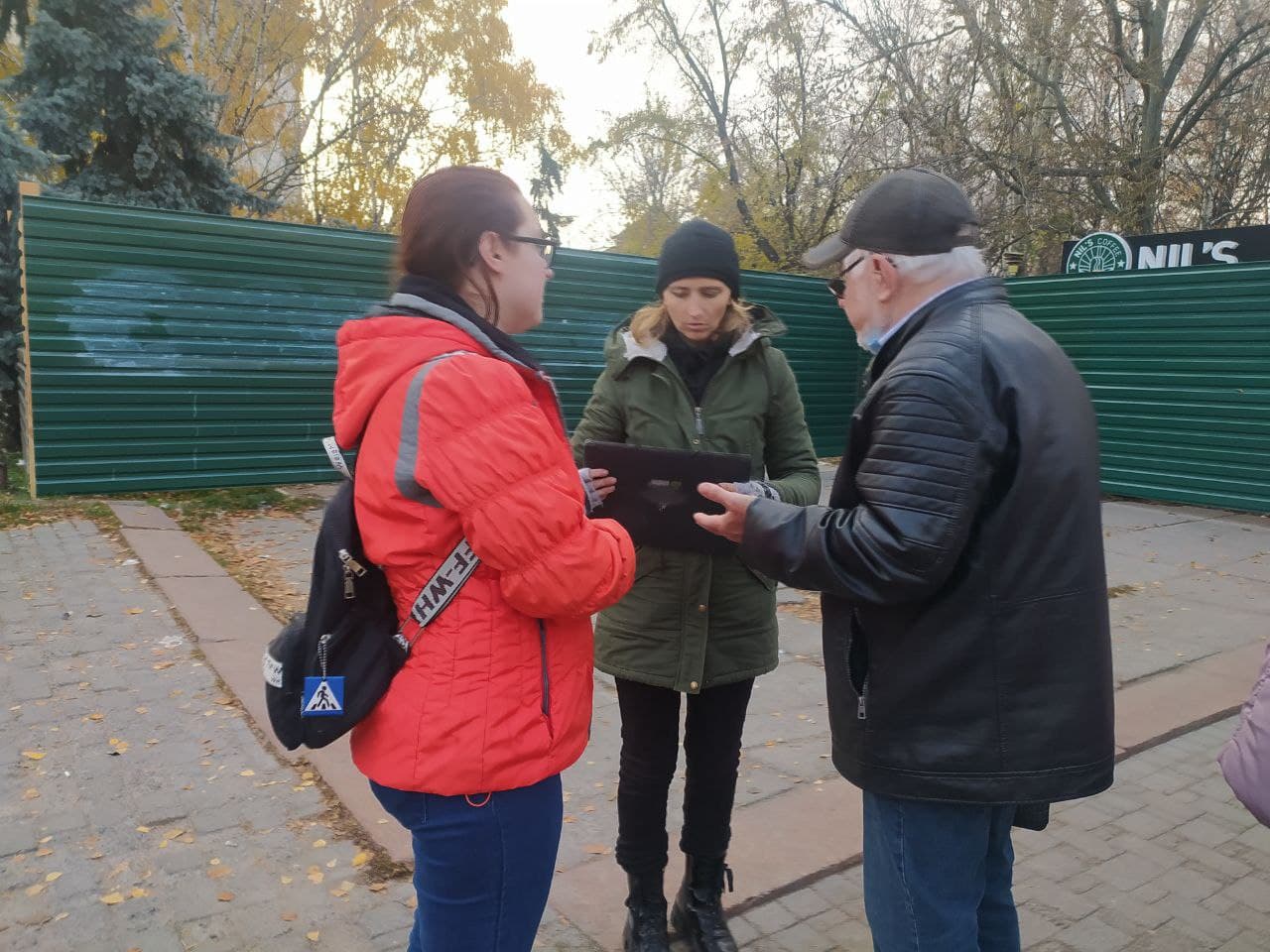 За словами журналістки та активістки Ірини Требунських коли вони відійшли, то до паркану підійшов чоловік, який відмовився представитися, але попросив не писати на паркані і сказав, що роботи вестися в сквері сьогодні не будуть. Він зазначив що з активістами готові зв’язатися і поспілкуватися.