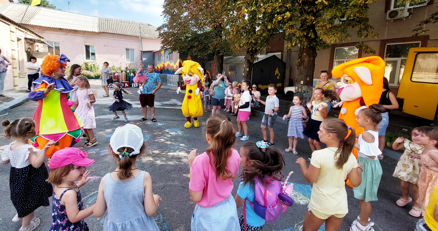 На подвiр’ї театру, митцi влаштували для маленьких театралiв насичену розважальну програму з патрiотичною тематикою.