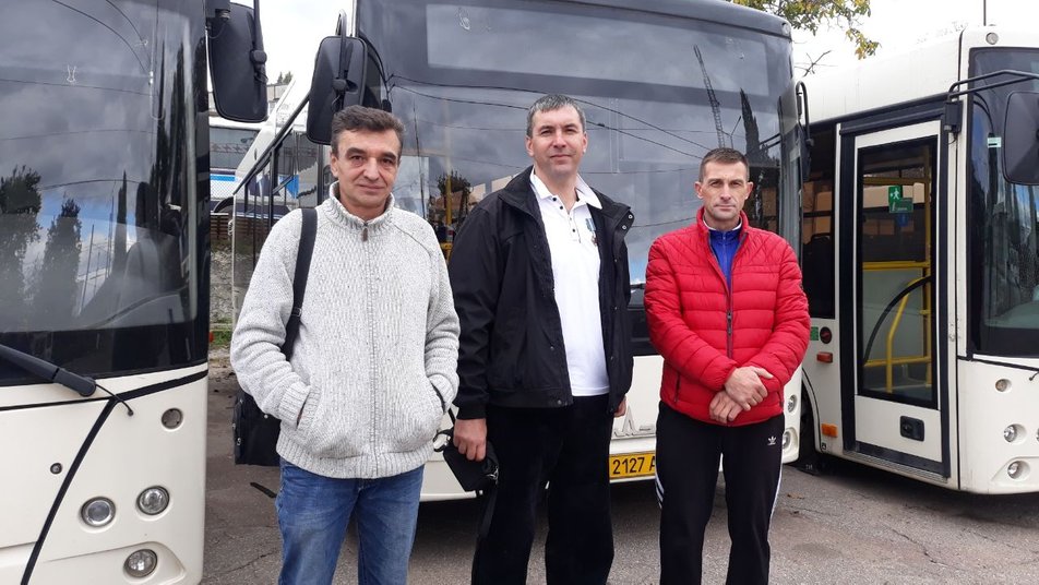 Це троє з 11 водiїв пiдприємства “Електротранс”, якi евакуювали людей з окупованих територiй. Василь Штомпель говорить, рейс мiг тривати вiд чотирьох до семи днiв. Бувало, спали в автобусi серед поля.