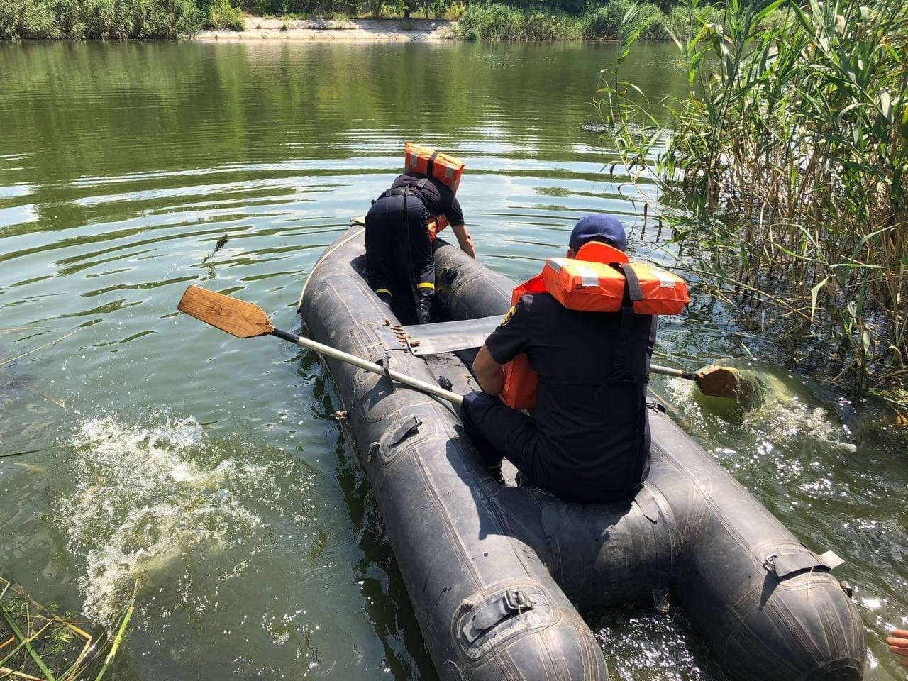 Бiйцi Головного управлiння ДСНС в областi за допомогою лодки та кошми дiстали тварину з рiчки.