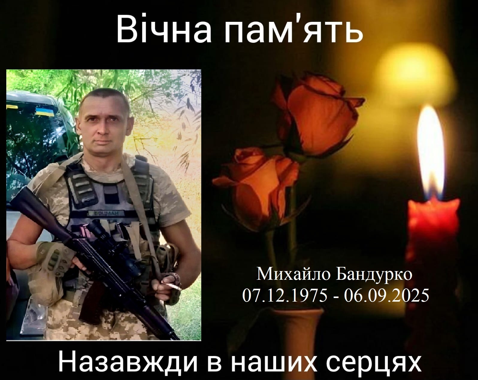 Старший солдат Михайло Бандурко, 1975 року народження, водій відділення перехоплення БПЛА, поліг 06 вересня 2025 року в районі населеного пункту Білокузьминівка, Краматорського району, Донецької області.