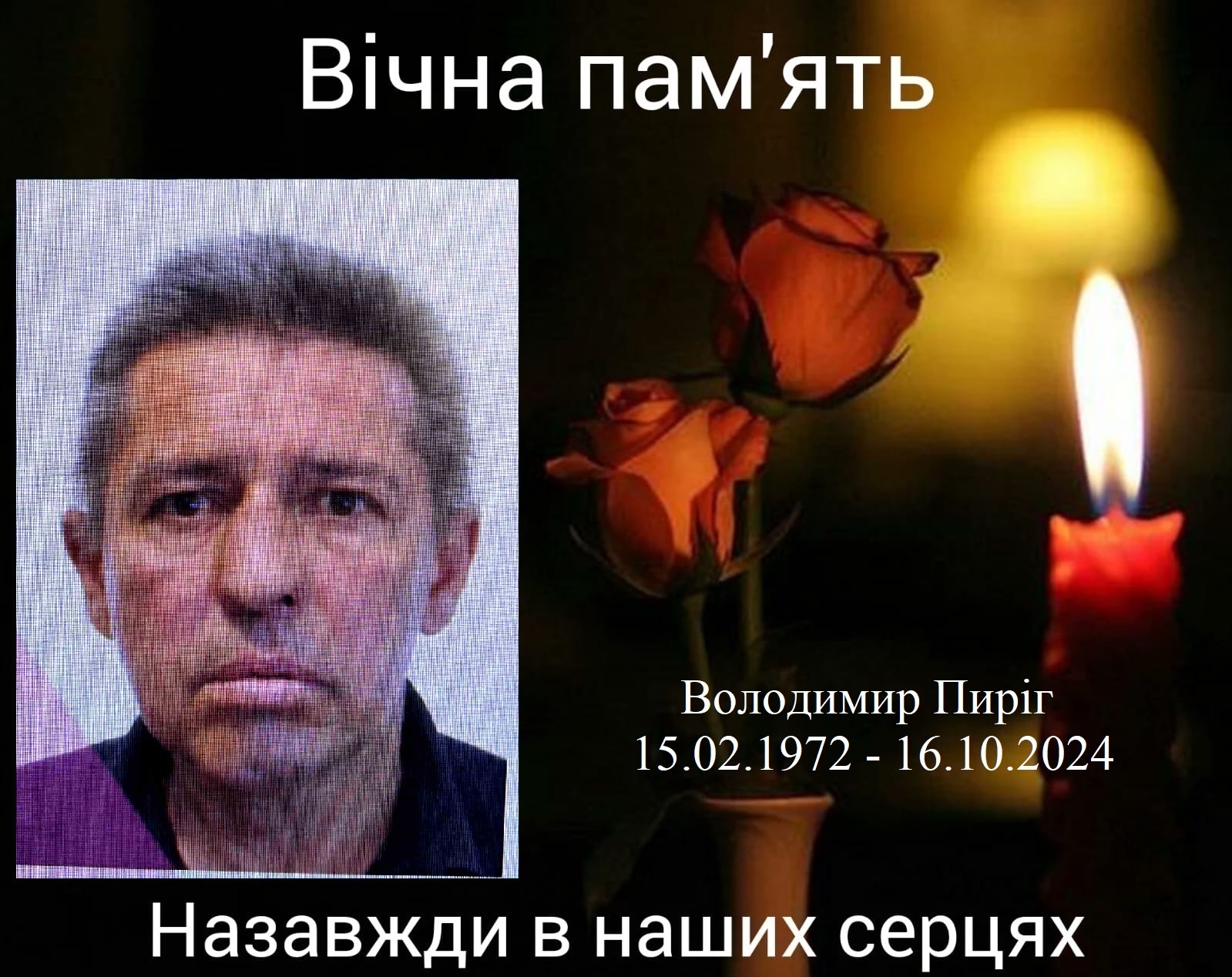 Молодший сержант Володимир Пиріг народився 15 лютого 1972 року. Захищав Україну від російських окупантів на посаді стрільця стрілецького батальйону. Він загинув, виконуючи бойове завдання, 16 жовтня 2024 року в районі населеного пункту Вовчанськ Чугуївського району Харківської області. Його життя обірвалося на передовій — там, де вирішується доля нашої держави.