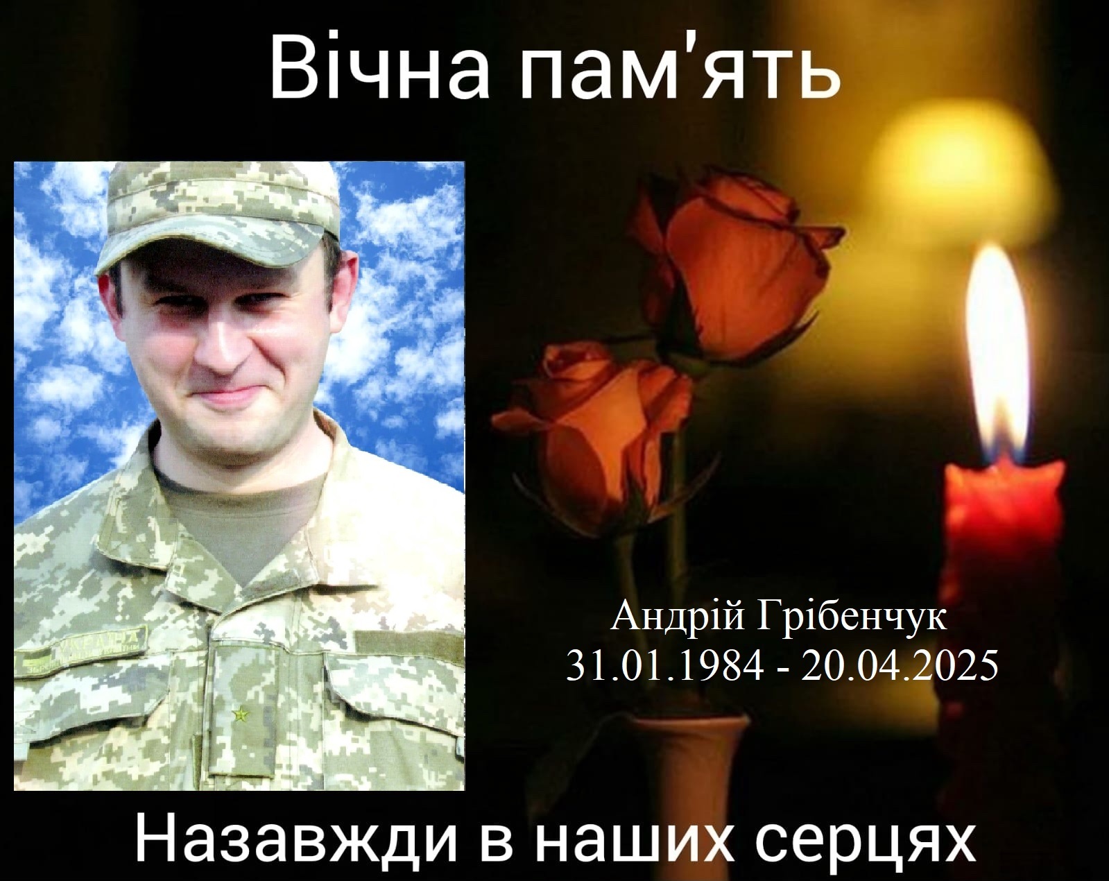 Старший лейтенант Андрій Грібенчук помер 24 квітня 2025 року за місцем дислокації підрозділу в районі населеного пункту Дружківка Краматорського району Донецької області. 41-річний захисник брав безпосередню участь в бойових діях на найгарячіших лініях бойового зіткнення.