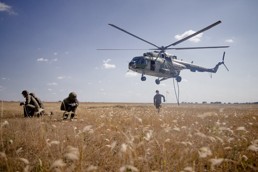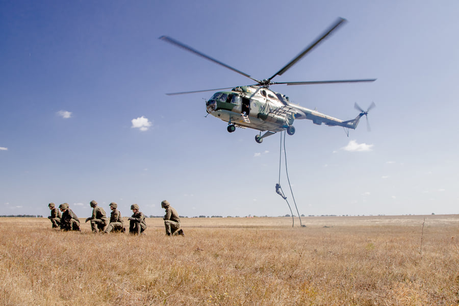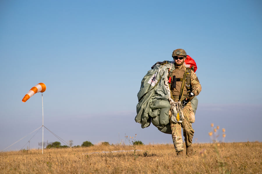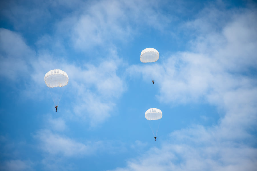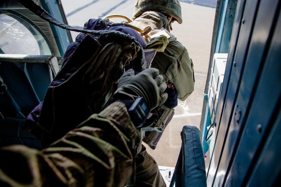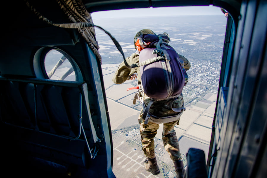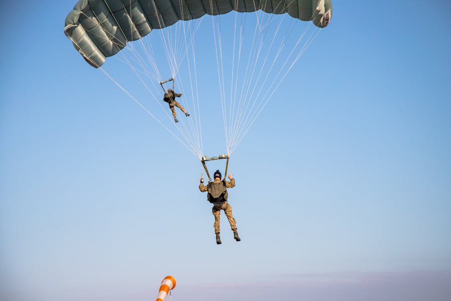 На базi гвардiйської авiацiйної бази в Олександрiї проходили тренування з десантування парашутним i безпарашутним способами.