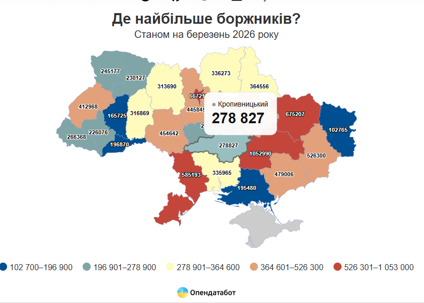 Понад 9,5 млн боргів нараховується в Україні у Єдиному реєстрі боржників станом на початок березня 2026 року. За рік боргів побільшало на понад півмільйона.